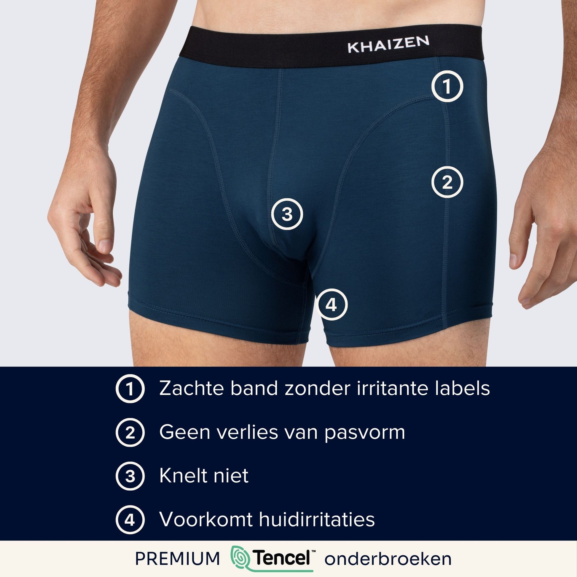 KHAIZEN Underwear gives you all-day support without losing its fit. The buttery soft TENCEL™ fabric is stretchy and embraces your shape. The pouch for your package is more flexible and roomy to prevent a tight feeling.